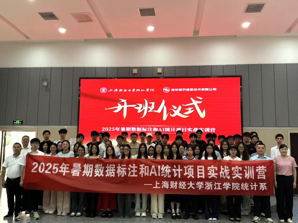 近日,乐玩网页版联合金华浙农信息技术有限公司,共同举办2025年暑期数据标注和AI统计项目实战实训营。金华浙农信息技术有限公司总经理郑永富及相关技术骨干,统计系负责人武斌及相关教师,以及全体参训学生共同出席开营典礼。
